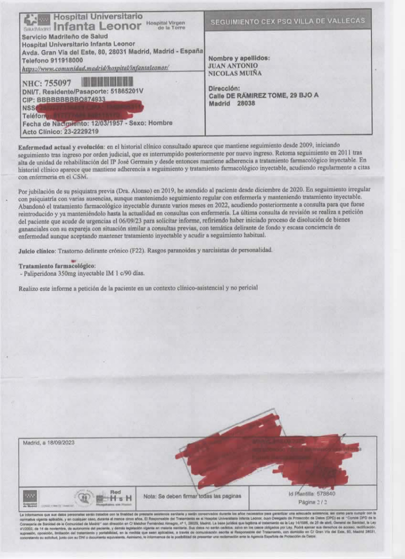 Con el objetivo de aportar transparencia, voy a publicar en esta web los informes psiquiátricos que me han sido entregados a lo largo de los años. Dichos documentos serán publicados anonimizando los nombres, firmas y números de colegiado, con el fin de preservar la identidad de los profesionales. La publicación de estos informes no tiene como finalidad señalar ni acusar a ninguna persona concreta, sino mostrar el recorrido clínico completo, permitir una comprensión objetiva del caso y evidenciar la ausencia de revisiones significativas pese al tiempo transcurrido.